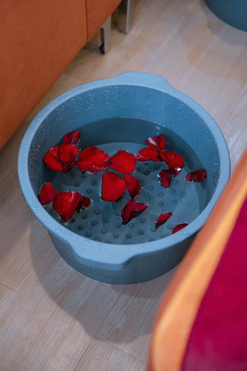 (차가운 생수 제공) - ngâm chân bằng muối thảo dược. – 허브 솔트 족욕 서비스